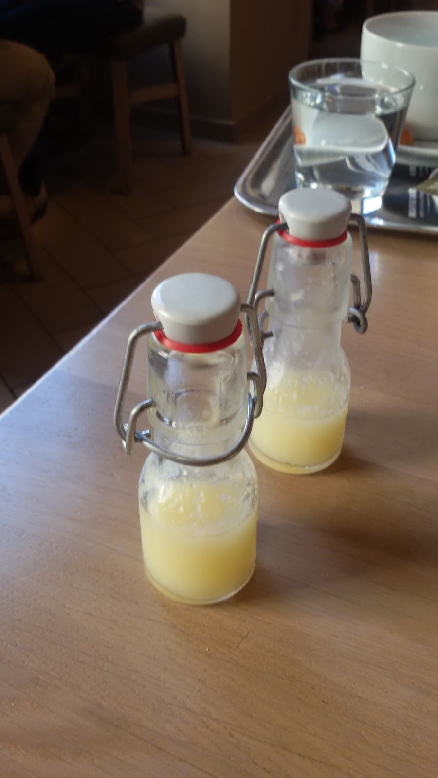 Если к чаю хочешь лимон, то лимонный соку уже выжат в баночку и его не надо давить у себя в чашке...