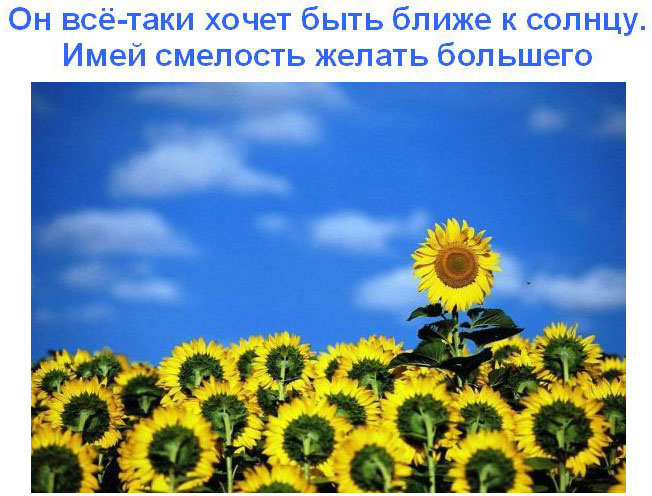 В постижении вершин настойчивость является чуть ли не «королевой во всём королевстве». Прошу заметить настойчивость - это не наглость, назойливость, демонстративность. Часто путают… Я считаю, настойчивый человек - терпеливый, крепкий и «с характером». Чего нам всем желаю при любых условиях, и во всякие времена.9.СТАВЬ МАСШТАБНЫЕ ЦЕЛИ!