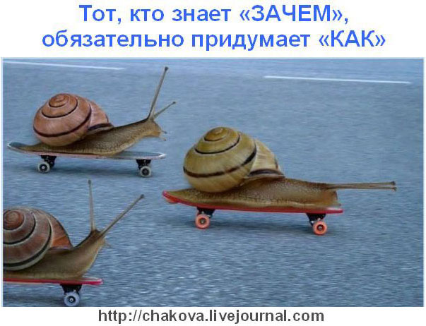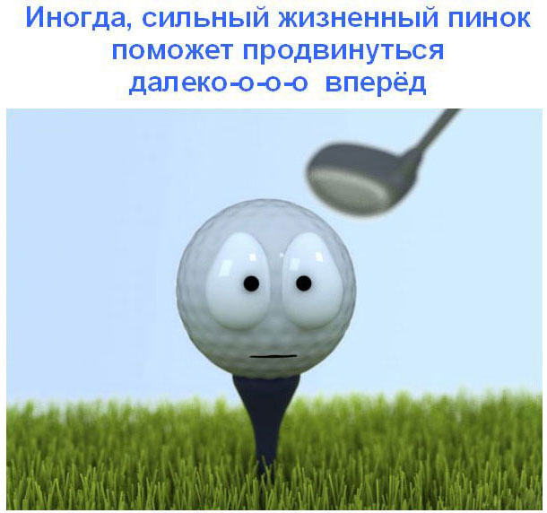 Наверное, сложности – это хитрости на испытание веры, веры в свою мечту, желание… Говорят, что самое ужасное, когда человек начинает хотеть что-нибудь хотеть. Не знаю… Пока такого у меня не было… Как по мне самое ужасное – это когда человек не верит в себя. Из практики индивидуальных консультаций по абсолютно разным проблемным ситуациям причина почти в 90% - неверие в себя, т.е. низкая самооценка. Это просто какой-то массовый невроз, групповая характеристика. Каждый из нас предположительно знает, откуда идёт эта низкая самооценка. Есть очень хороший фильм «В погоне за счастьем». Там главный герой говорит своему сыну: «Если кто-то не может чего-то сделать, он будет и тебя убеждать в том, что это невозможно». Представь себе, что эта фраза носит «эффект сети». Я думаю, что вот она причина этой цифры - 90%. Не дай сети тебя запутать, откинь её и поверь в себя!5. НЕ БОЙСЯ ПИНКОВ И ТРУДНОСТЕЙ