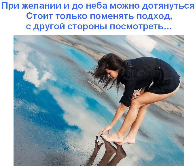 Будь всегда в ресурсном состоянии! Я считаю, что самомобилизация вообще есть главное для внутреннего настроя человека. А как ты знаешь, внутренний настрой формирует события вокруг. Даже, если сильно встряхнуло, просто «натяни на себя улыбку» (не надо это делать при всех). Но сделай это. Выгони прочь все мысли, воспоминания, предположения или догадки, связанные с выбивающей тебя из равновесия ситуацией. Ужасно, но человек намного более склонен прокручивать в голове негатив, чем позитив. Человек больше склонен поверить в ложь, чем в правду. Не понятно почему… По крайней мере мне… Не хочется верить статистике, но это так. Я искренне желаю, чтобы при любой-любой малоприятной ситуации (если таковая уже случилась), ты всегда мог самостоятельно «окрылиться», «опериться», «поставить паруса», «разогнаться на взлётной полосе» (даже если она «чёрная») и парИть. 4. ВЕРЬ В СЕБЯ!
